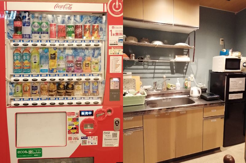 There are a washing machine and a dryer near the entrance. They operate using 100-yen coins. There are four washing machines and four dryers in the hostel.