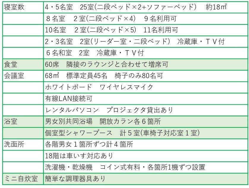 料金体系は宿泊と食事が別建てとなっておりますので、夕食を外で済ませた後に宿舎入りするような行程も立てやすくなっています。